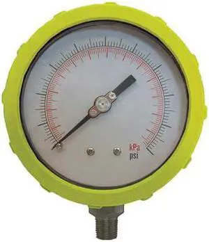 ZORO SELECT 4EFH2 Pressure Gauge, 0 to 60 psi, 1/4 in MNPT, Plastic, Green