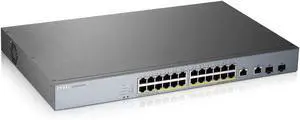 Zyxel 24-port Gigabit Unmanaged PoE+ Switch with 250 Watt Budget and 2 SFP, Long Range PoE Switch [GS1300-26HP]