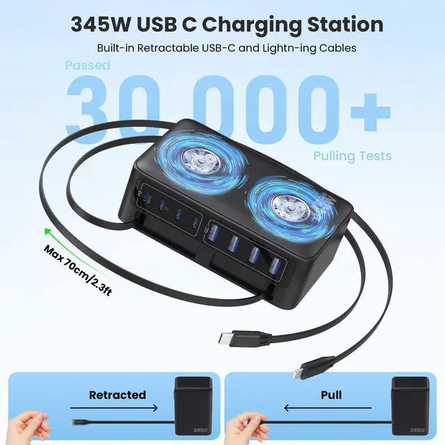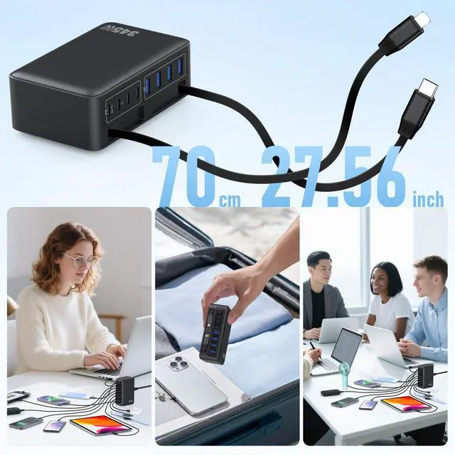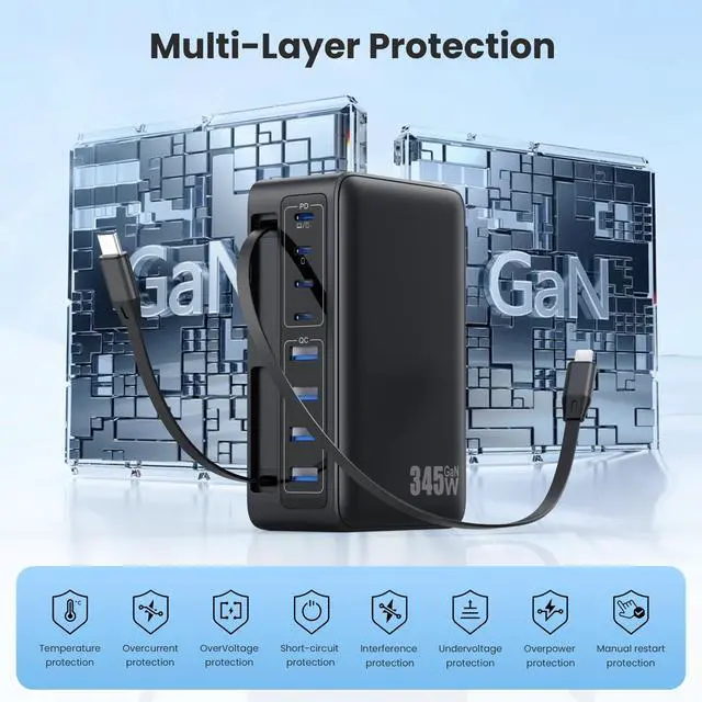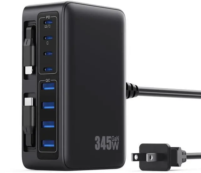 345W USB C Charger with 10 Port Fast Charging Station 65W Laptop Power Adapter