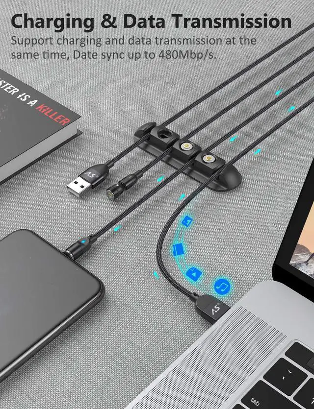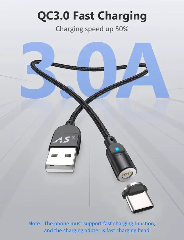 A.S 3 IN 1 Magnetic USB Cable, QC3.0 Fast Charging & Data Sync USB C Magnet Phone Charger Cable
