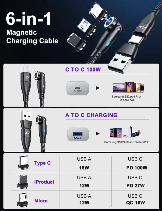 ![A.S Magnetic Charging Cable[4PACK, 3.3/3.3/6.6/6.6ft]-3 in 1 Magnetic Phone Charger Data Transfer...](http://c1.neweggimages.com/sellingpilot/modules/product/a-plus/14727b91a41f670cf6a62c652b20ab8a10fa685ae28b0ec32cb35ae4d85c1ab9.jpg)