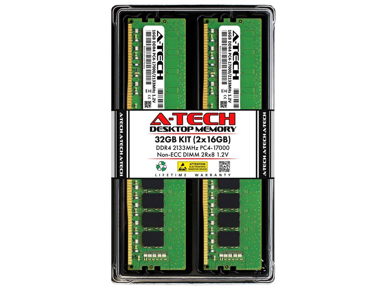 A-Tech 32GB (2x16GB) DDR4 2133MHz DIMM PC4-17000 UDIMM Non-ECC Unbuffered 2Rx8 1.2V CL15 288-Pin Dual Rank Desktop Computer RAM Memory Upgrade Kit