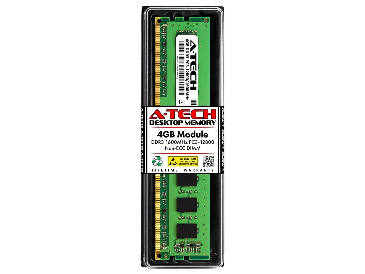 A-Tech 4GB DDR3 1600MHz DIMM PC3-12800 UDIMM Non-ECC CL11 240-Pin Desktop Computer RAM Memory Upgrade Module