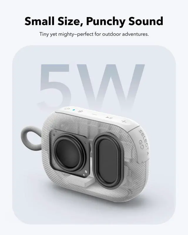 IP67 Protection and Floats: Waterproof speaker designed to withstand harsh outdoor conditions and can even float. The Speaker can even be immersed in up to 3.3 ft deep for 30 minutes, making it ideal for a variety of activities. Whether you're enjoying a shower, camping in the wilderness, having a beach picnic, or sailing on a lake, this speaker ensures your favorite tunes are always with you. 20-Hour Playback: Enjoy up to 20 hours of non-stop music on a single charge with this portable Bluetooth speaker, perfect for showers, extended outdoor adventures, all-day gatherings, hiking through the mountains, or lounging by the pool. Outdoor-Ready and Portable: The lightweight design and included strap make this mini speaker portable enough to carry anywhere, whether you're showering, camping, hiking, or biking. Supports Wireless Stereo Pairing: Enable True Wireless Stereo (TWS) pairing to wirelessly connect two speakers for richer, more immersive sound with stereo separation. To enable TWS pairing, connect one speaker to your smartphone, then press and hold the Bluetooth button on both speakers for 2 seconds. Surprisingly Punchy Sound: Despite its compact size, this portable speaker delivers powerful and punchy sound with 5W output, ensuring clear and dynamic audio performance.
