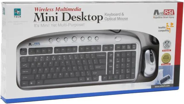 | Features | Anti-RSI A-shape Keys. 7 Internet Hot Keys. Mini Keyboard Design. Noiseless Comfort Wheel. Petite Handed Design. Power On/Off Switch. Secure RF Technology. Rechargeable Receiver. |