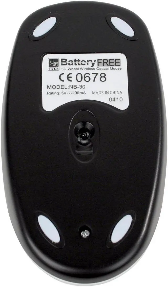 | Features | Global Innovation–Powers-Up with no battery. Precise Optical Technology to enjoy wireless freedom. 620 CPI, perfect resolution for accurate focus. Revolutionary Wireless ID Technology, allowing hundreds of wireless units to function in a closed environment, Smooth & Interference Free. Distinguished Frequency Adjustable Tuning automatically solves the difference in USB voltages, and tuned to optimum frequency keeps the unit in its best status after four seconds, this always maintains a mouse which is smooth, like new. 125KHz working frequency to always maintain a safe working environment. |