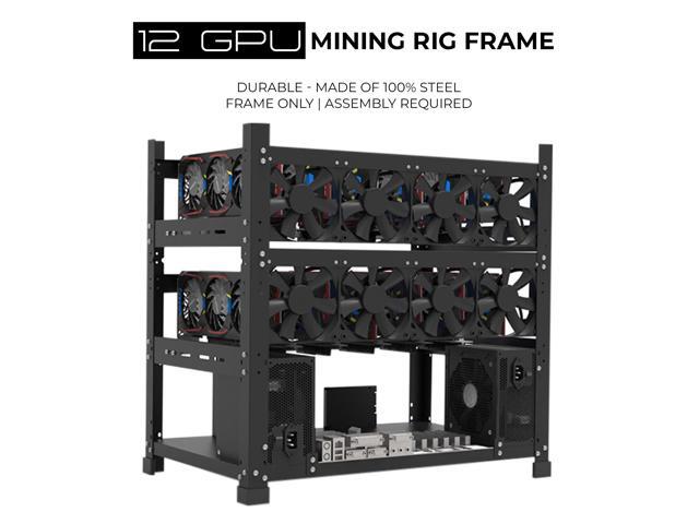 AAAwave 12GPU Mining Rig Frame - The Sluice V2 Steel Open Frame Mining Rig Case, Stackable Chassis for Crypto Coin Currency & AI Machine Learning Applications - Frame Only (Black)