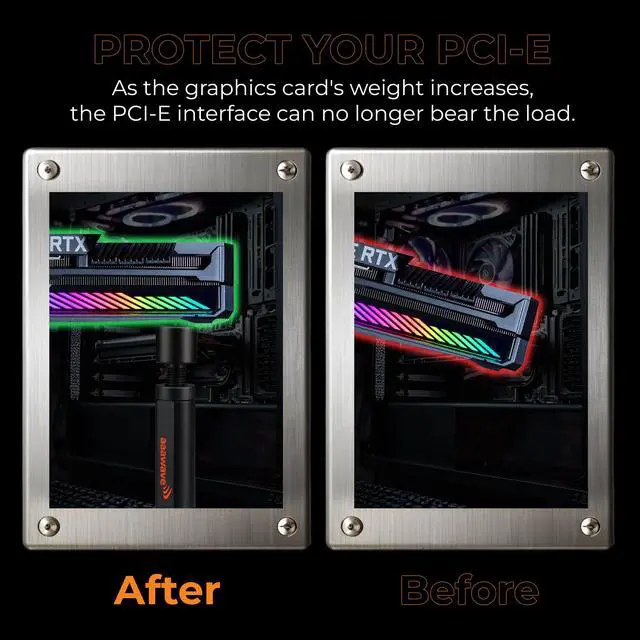 Magnetic Non-Slip Base - The magnet based helps to stand firmly in the chassis. There is a non-slip rubber pad on the ends of the GPU holder side, no metal on metal contact, nothing will be shorted and nothing will be scratched.