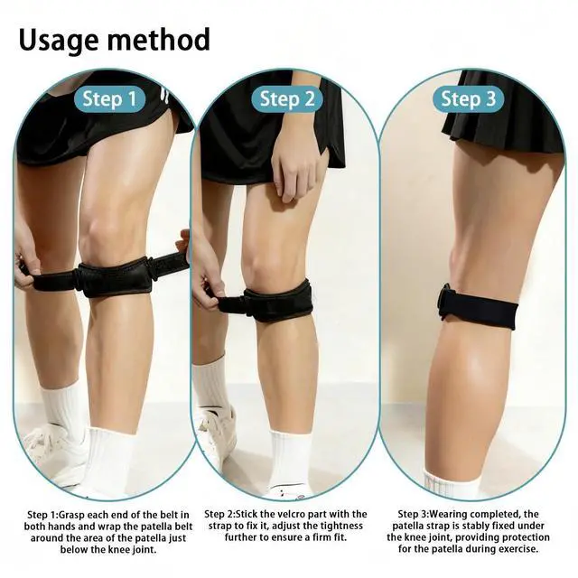 Fully Adjustable Patellar Tendon Support Strap: Double-knot Design; Fully adjustable; The perfect-fit of the strap reduces the pressure on the patella tendon and thus helps to provide extra support while running or exercising; Regain your stability; Especially crafted for people suffering from knee instability