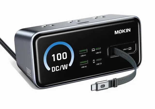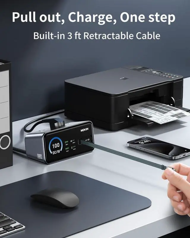 WHAT YOU GET: 8-in-1 USB Power Strip 100W, 3ft (90 cm) Retractable Cable(build in), user guide,
