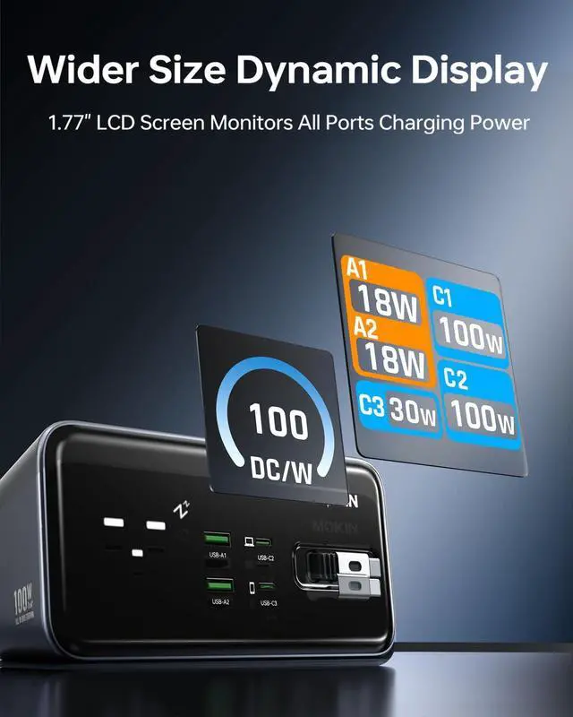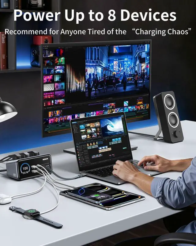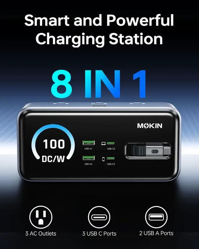 8-IN-1 CHARGING STATION with 3 USB-C, 2 USB-A, and 3 AC outlets.