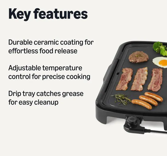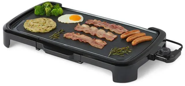 • LARGE COOKING AREA: Electric griddle features a spacious 10 x 20 inch flat cooking surface perfect for pancakes and more