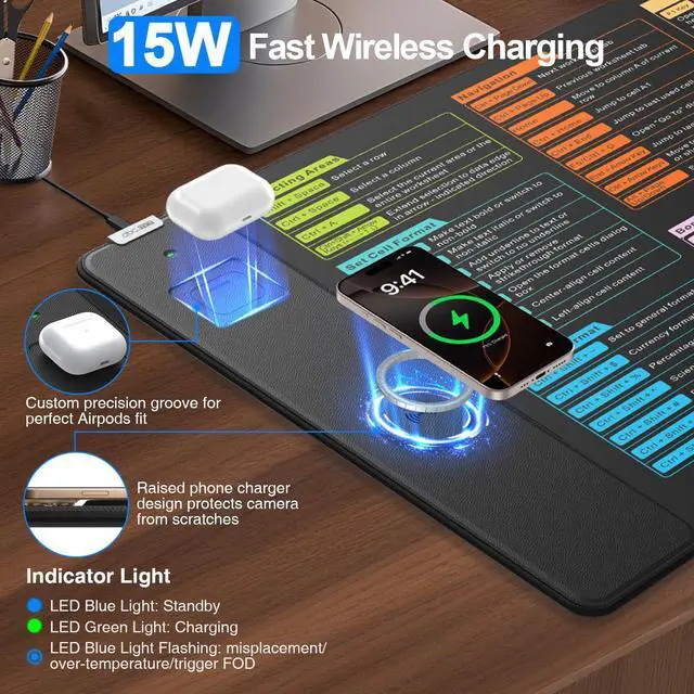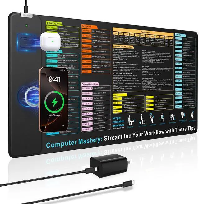 Wireless Charging Mouse Pad with Excel Cheat Sheet