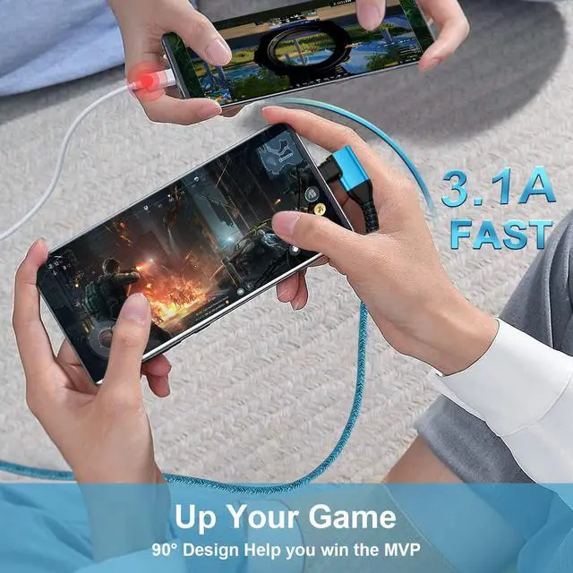 Newest Upgarde Nylon Braided USB A to USB C Android Charger Cable Included 3 Advantages: 3.1A Fast Charging, 90° Right Angle, Nylon 66 Braid