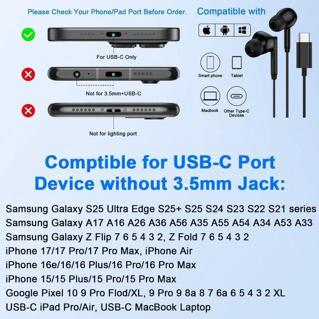 USB C Wired Earbuds Compatible Models: