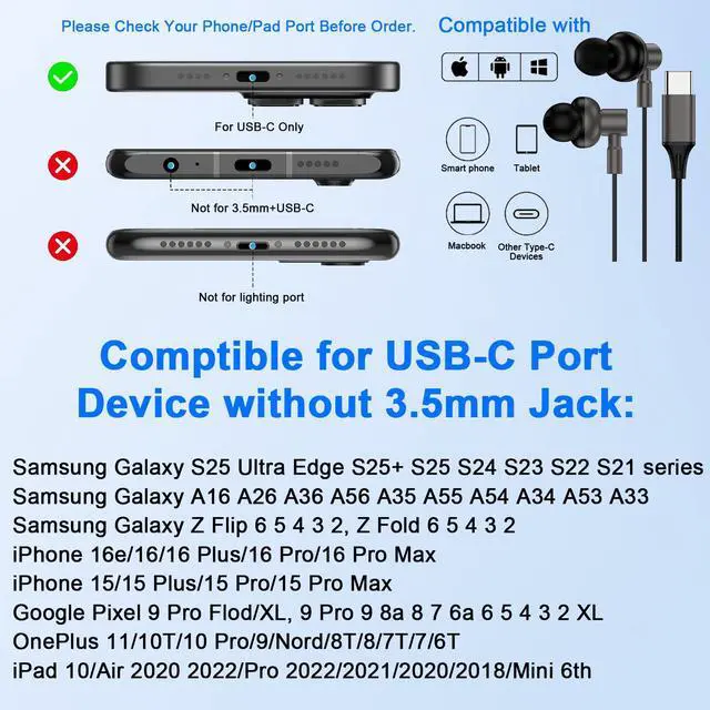 USB C Wired Earbuds Compatible Models: