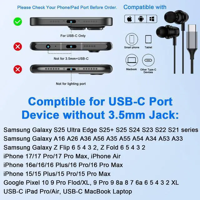USB C Wired Earbuds Compatible Models: