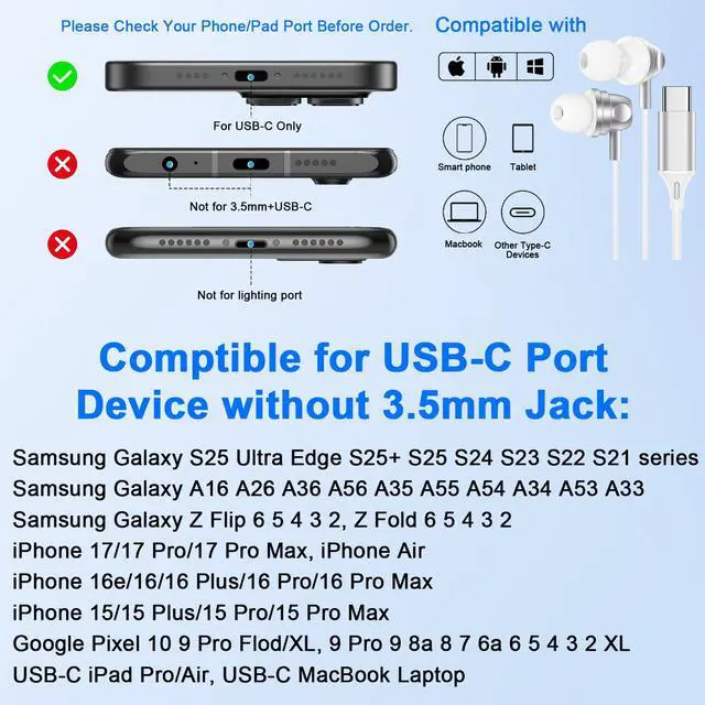 USB C Wired Earbuds Compatible Models: