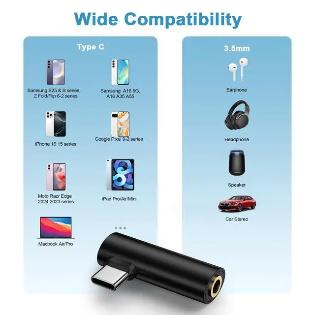 USB C to 3.5mm Audio Adapter, Enjoy Music Anytime, Anywhere