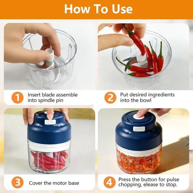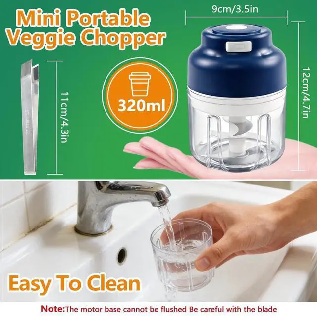 Multi-Function Kitchen GadgetThe mini portable vegetable chopper is a versatile tool perfect for mincing garlic, ginger, celery, and onions, as well as grinding nuts and preparing various delicacies and sauces. Its one-touch operation simplifies food prep, making it ideal for busy kitchens or anyone looking to save time in the kitchen.