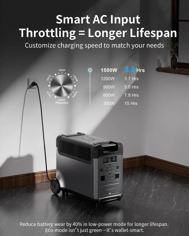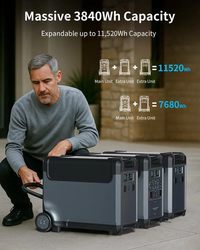 [High Capacity & Long Lifespan] The powerful portable power station features a high capacity of 3840Wh, expandable up to 11520Wh, ensuring you have plenty of energy to power your devices in any situation. Our robust EV-Grade Lithium Iron Phosphate (LiFePO) batteries deliver over 4000 cycles and a lifespan of up to 10 years, ensuring long-term reliability.
