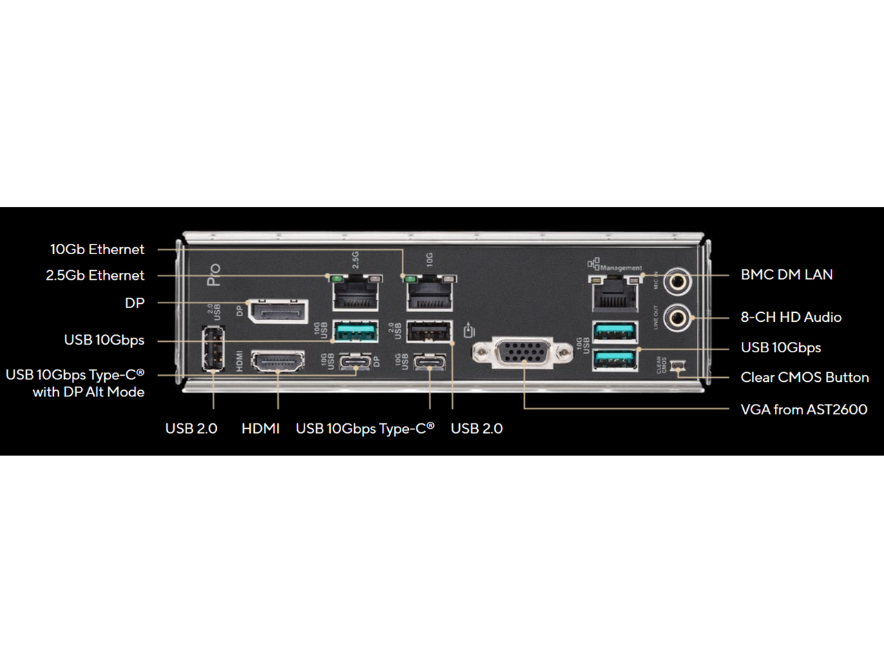 - LAN: 1 x 10GB/s LAN, 1 x 2.5GB/s LAN, 1 x 10/100/1000 Mbps Management LAN
