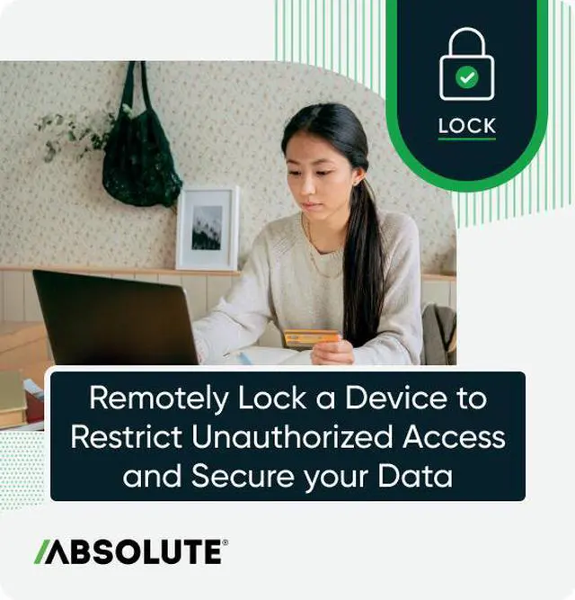 It goes without saying – if your device is missing, you need your personal files and information protected against fraudulent activity, no matter who's pushing the buttons. Installing Absolute Data Protect on your laptop lets you locate your device, lock it from unauthorized use, and permanently erase your sensitive data, all from your remote location. Your important files, pictures, saved passwords, and personal information are secure, and your identity is safe.