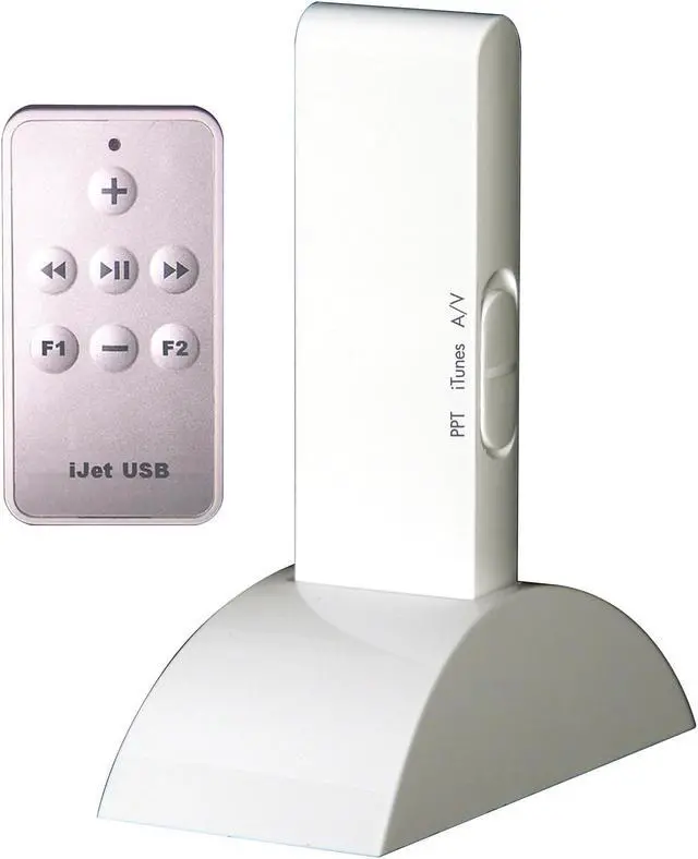 | Features | Designed for PC/Mac computers (desktop or laptop). Up to 150 ft range for RF remote. 3-position selectable switch between PPT, Mac OS, A/V. Customizable to fit preinstalled programs on your computer. No external power supply required. Operates on USB power. Docking station allows maximum reception and easier connectivity when USB port is out-of-reach. 5-button remote with LED confirmation. |
