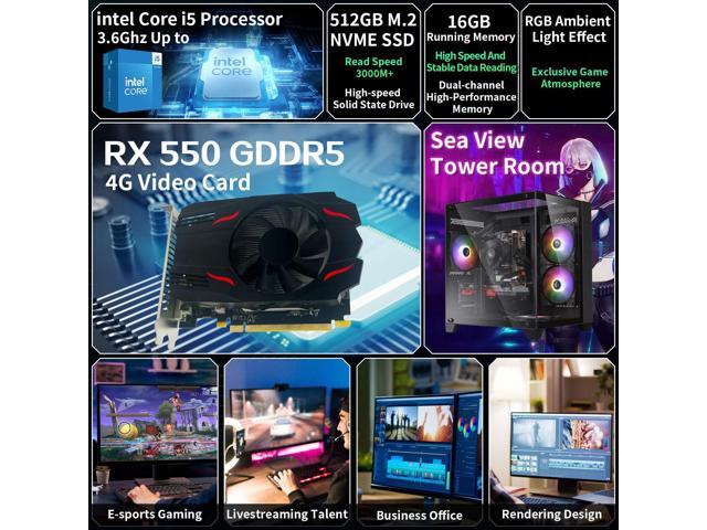 Prebuilt Gaming PC Desktop Computer,Intel Core i5 Desktop,Operating at A Frequency of 3.2-3.6 GHz,RX550 Graphics Card with 4GB GDDR5 Video Memory,16GB RAM, 512GB NVME SSD,WiFi5,RGB Fan x4 Windows 11