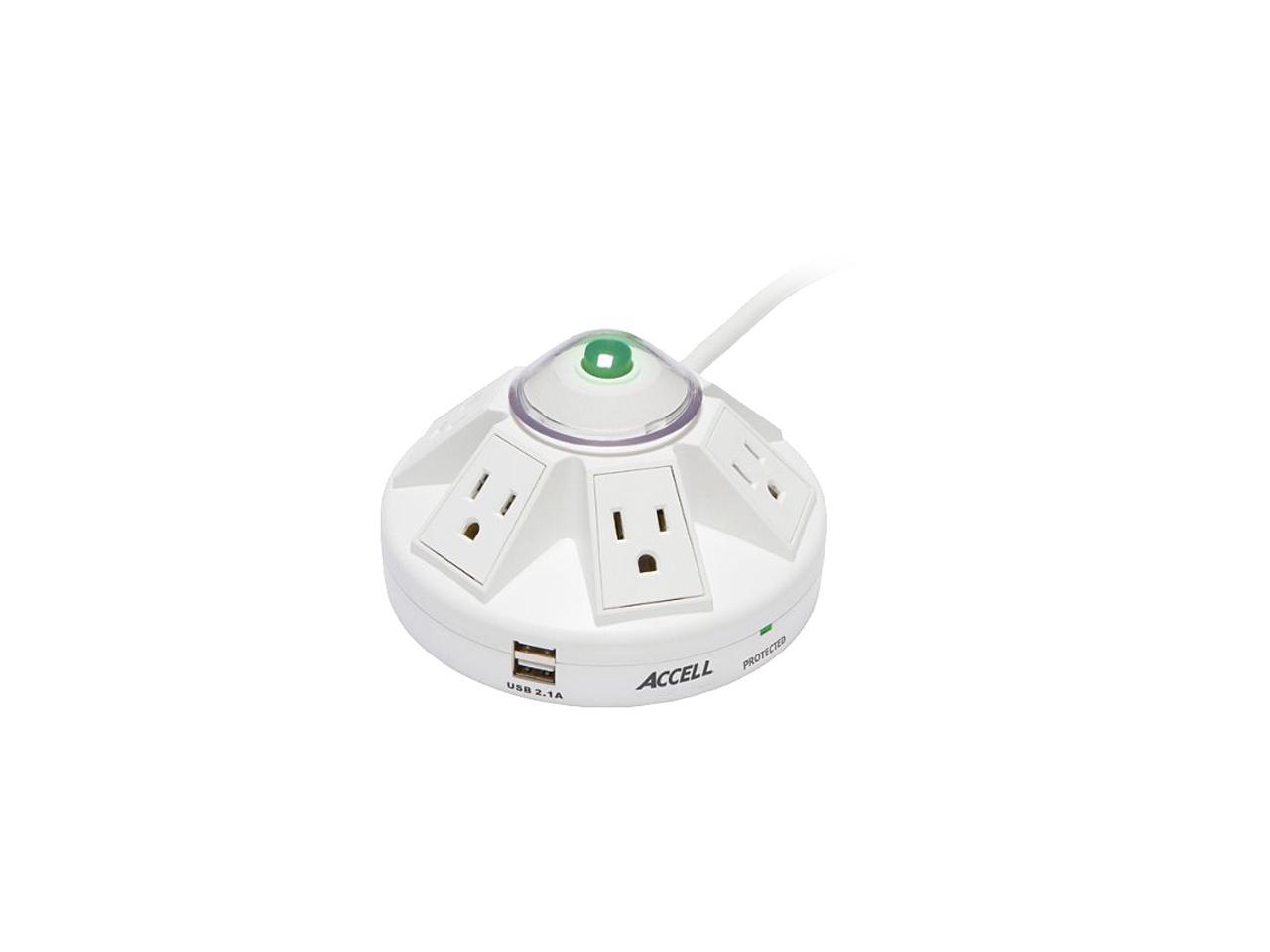 Accell D080B-014K Powramid Power Center - Surge Protector and USB Charging Station, 6 ft (1.8 m), Retail Box, White