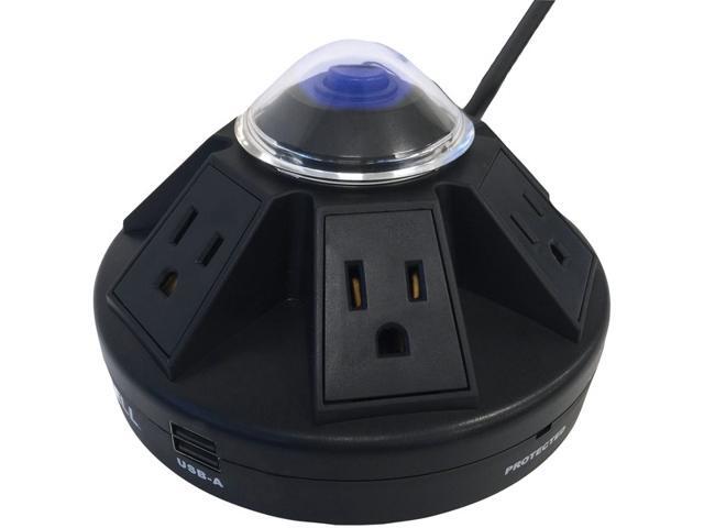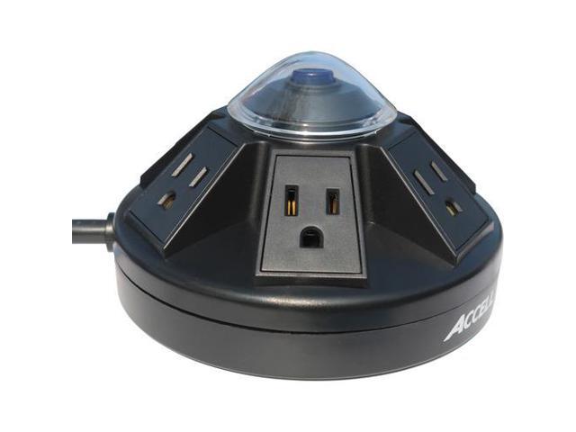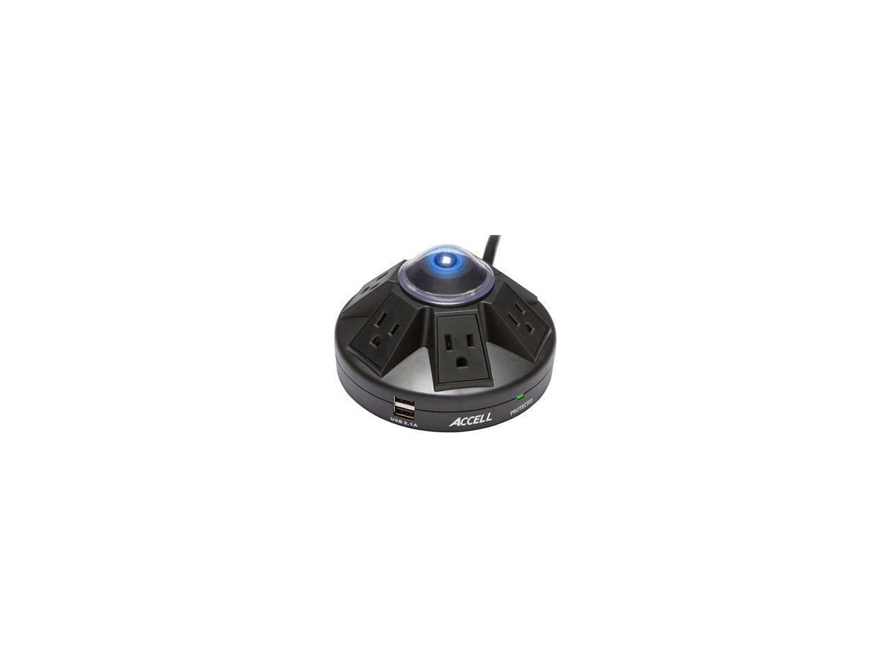 Accell D080B-015K Powramid Power Center - Surge Protector and USB Charging Station, 6 ft (1.8 m), Retail Box, Black