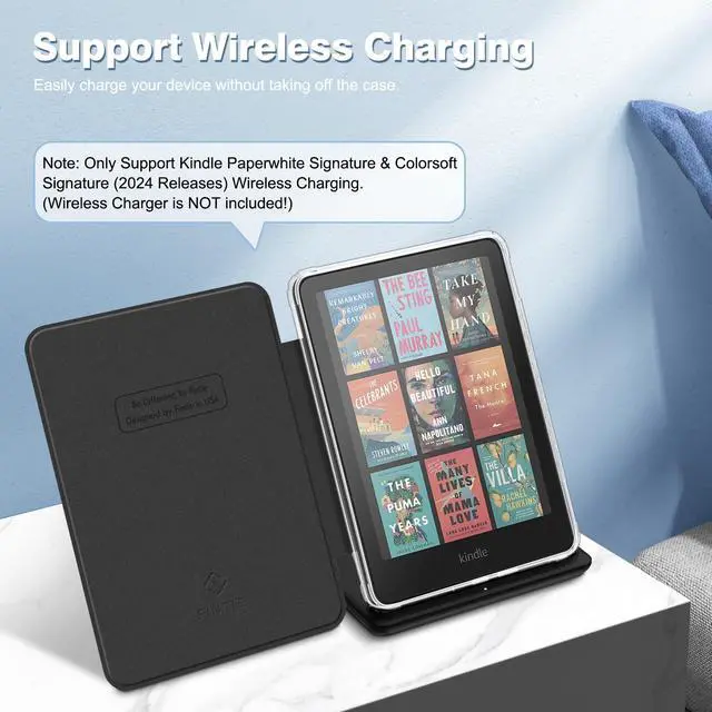 Compatible with the 2024 kindle paperwhite signature and colorsoft signature edition for wireless charging with case on.