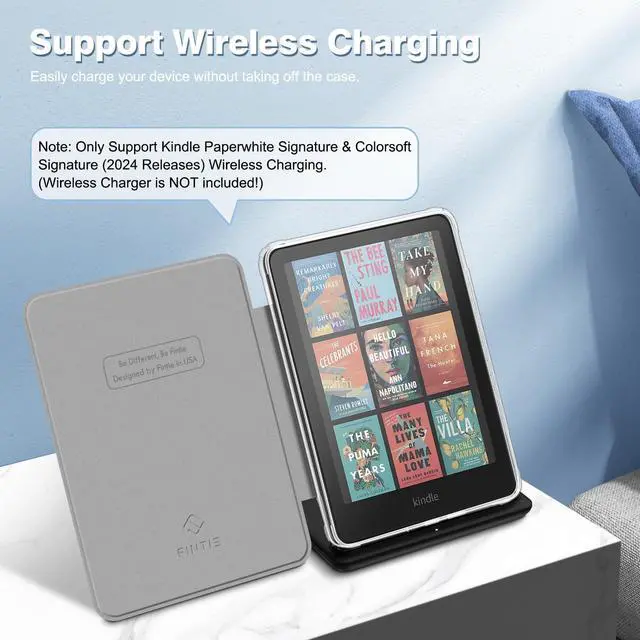 Compatible with the 2024 kindle paperwhite signature and colorsoft signature edition for wireless charging with case on.