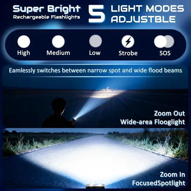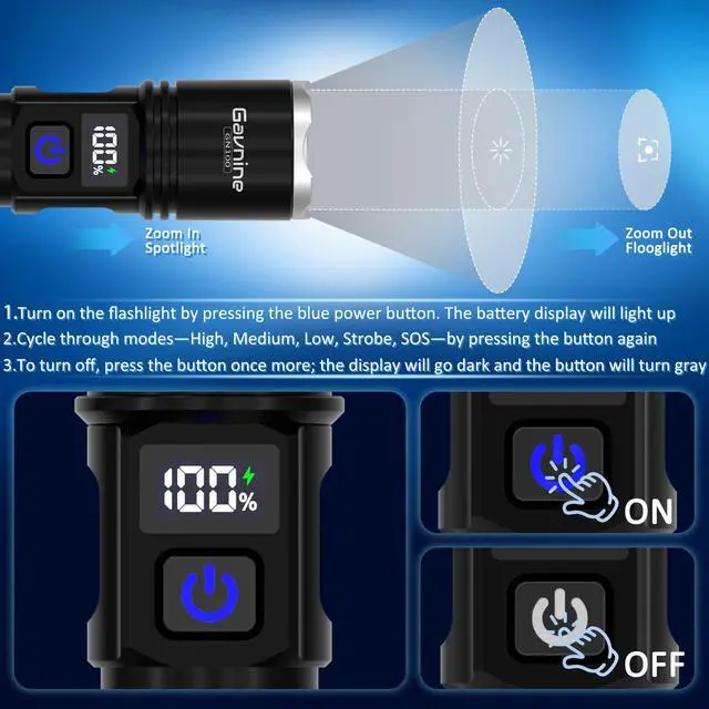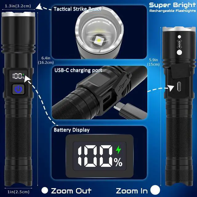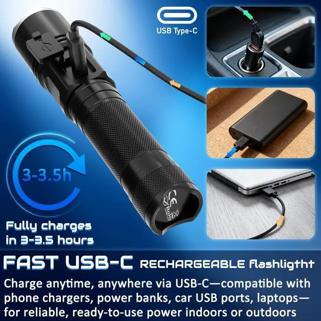 The rechargeable LED flashlight may become slightly warm after extended use in Highbrightnes. This is normal for high-lumen flashlights and does not affect performance or safety.
