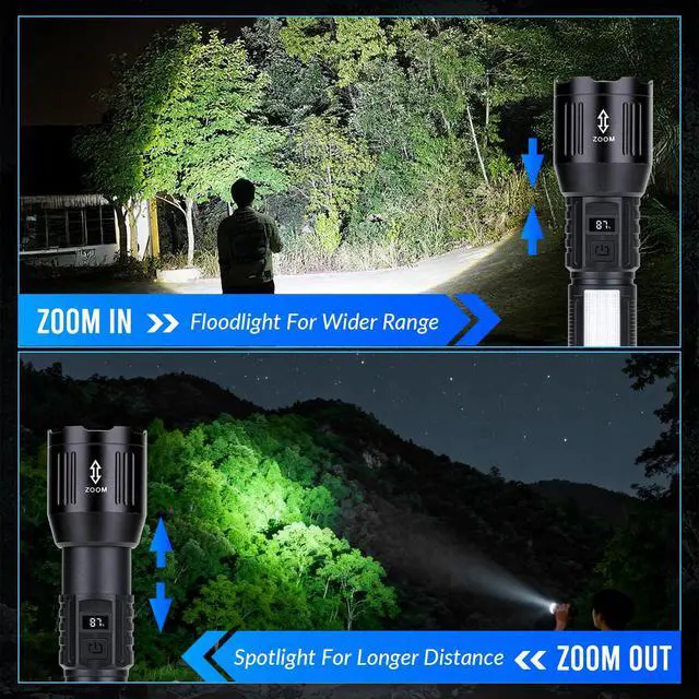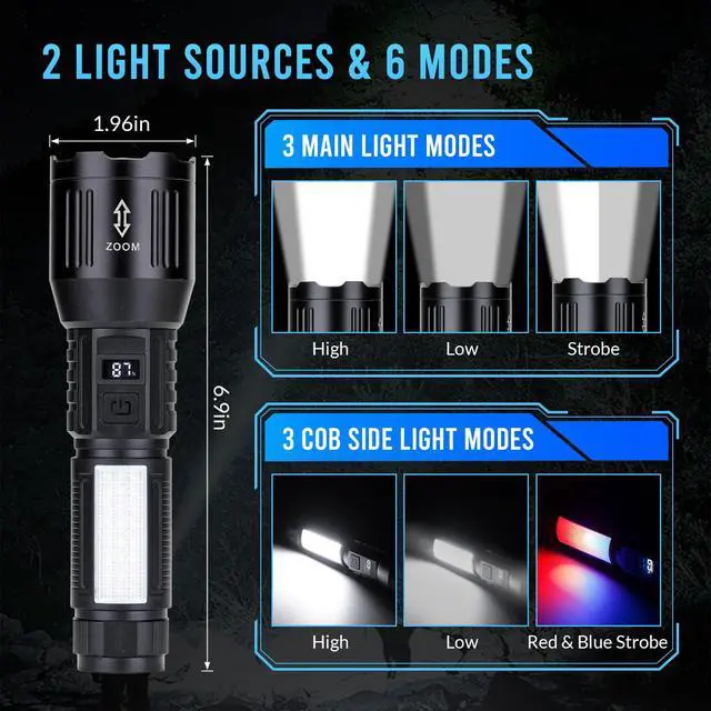 Flashlight High Lumens Rechargeable 2 Packs, 1,500,000L Handheld LED Flashlights High Powered, Adjustable Super Bright Flash Lights with 6 Modes, Cob Side Light, Tactical Flashlight for Emergency