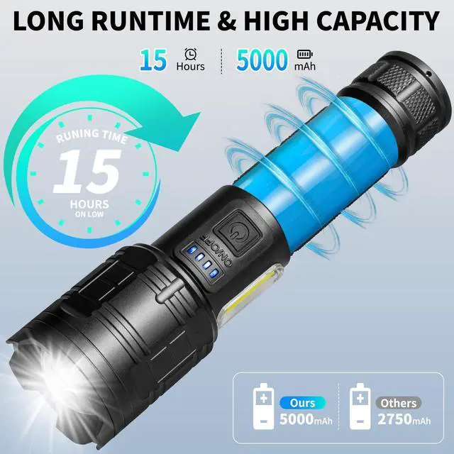 USB RECHARGEABLE FLASHLIGHTS - Running 15 Hours With 5000 ?Ah ?ATTERY