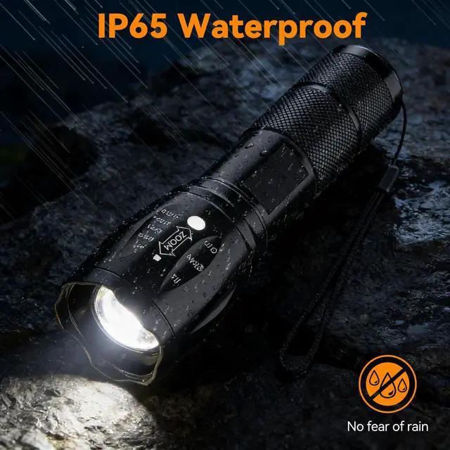• Waterproof & High Quality - The flashlight is waterproof and is made of aluminum alloy and rubber. Durable aluminum alloy crust, abrasion resistance.
