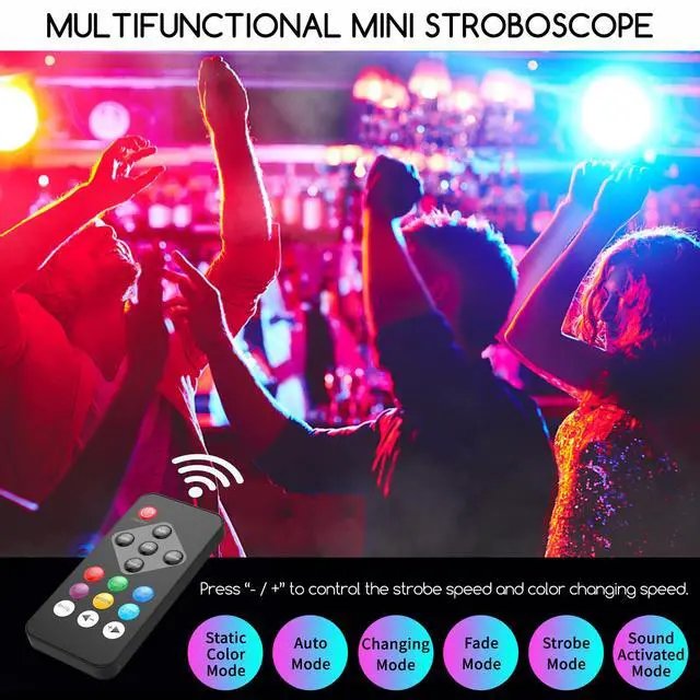 - Mini Strobe Light with 54 full-color LED lamp beads as the light source, with low power consumption and stable lighting performance.