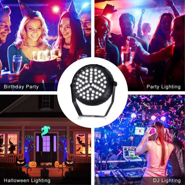 Telbum strobe light create a impressive flashing effect with 7 vibrant colors: red/ green/ blue/ purple/ amber/ cyan/ white, 54 leds show one color at a time. Creating a great flashing effect that is very bright and the light beam angle is 120 degree.