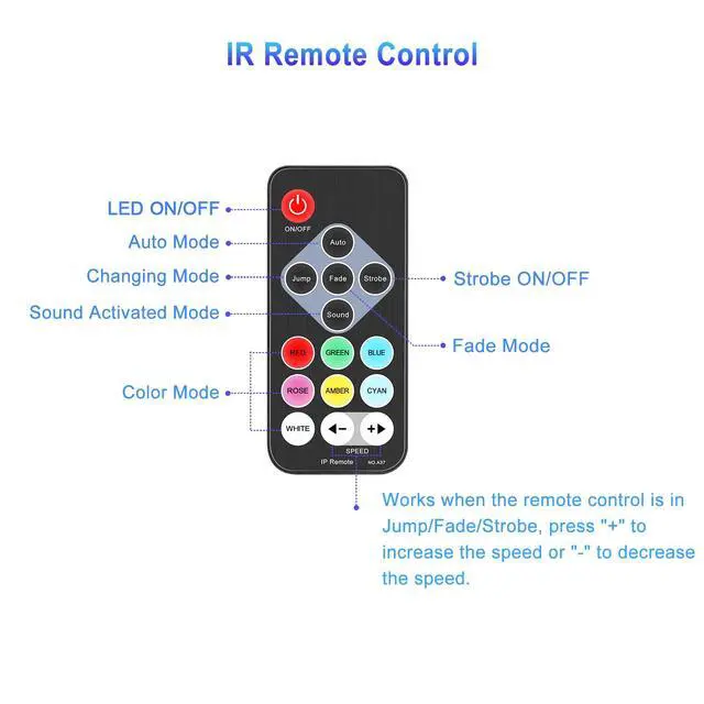 - Control Mode: Auto Program/Sound Active/Remote Control