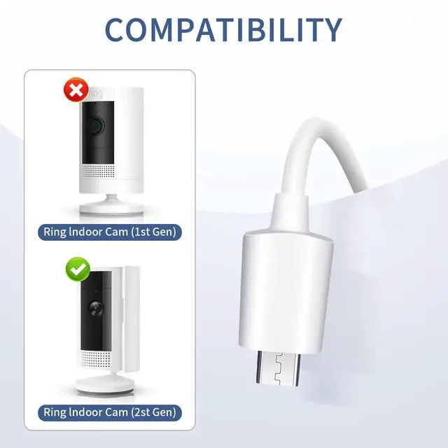 Compatible-charging cable power continuously for Ring Indoor Cam (2nd Gen), NOT for Ring Indoor Cam (1nd Gen),Ring Stick Up Cam, Ring Floodlight Cam, Ring Spotlight Cam,