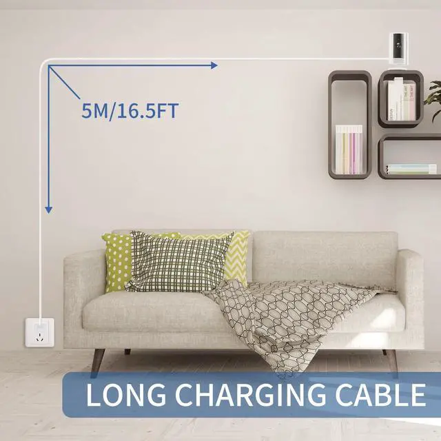 Long Cable- 16.5 ft/5m long cable makes it possible to connect it to the outlet even if the long distance between camera and outlet.