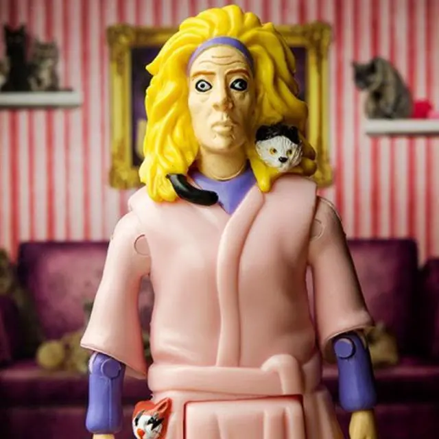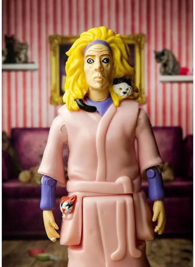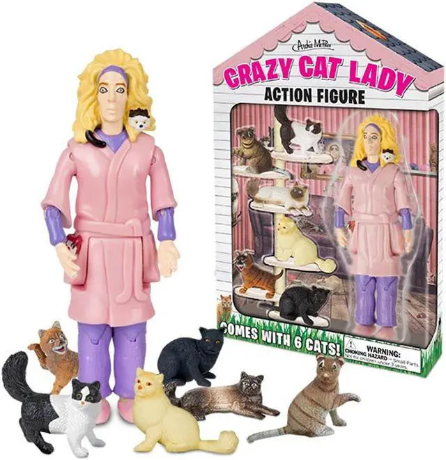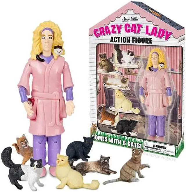 Every town has a crazy cat lady. She's the one who lives in a tiny house full of feral felines. This hard-vinyl Crazy Cat Lady Action Figure has a wild look in her eye and comes with an array of furry friends.