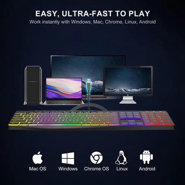 2025 Newest Version - Enjoy Acebaff Wired 7-Color Rainbow Backlit Keyboard,Which Is Slim,Comfortable ,High Performance, High Efficiency