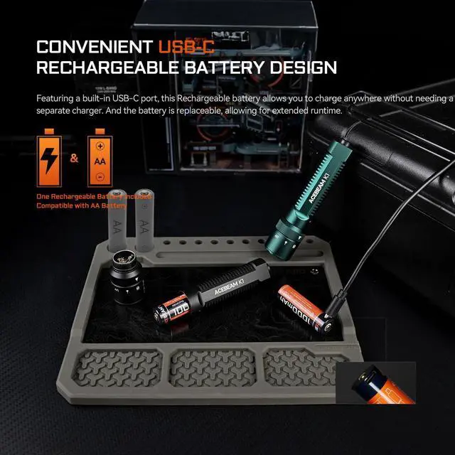 | Included Components | K1 Triple Sources Flashlight(Battery Included) x 1, Lanyard, O-rings x 2, Usb Cable, User Manual x 1 |
