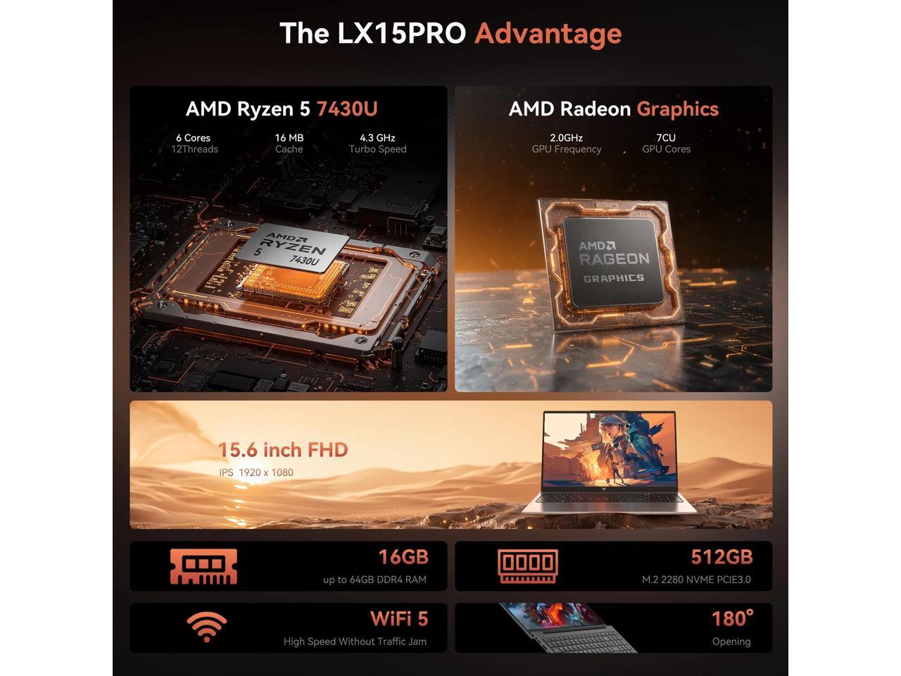 ACEMAGIC LX15PRO 15.6 in FHD Laptop AMD Ryzen 5 7430U 16GB DDR4 512GB SSD with Windows 11 Pro