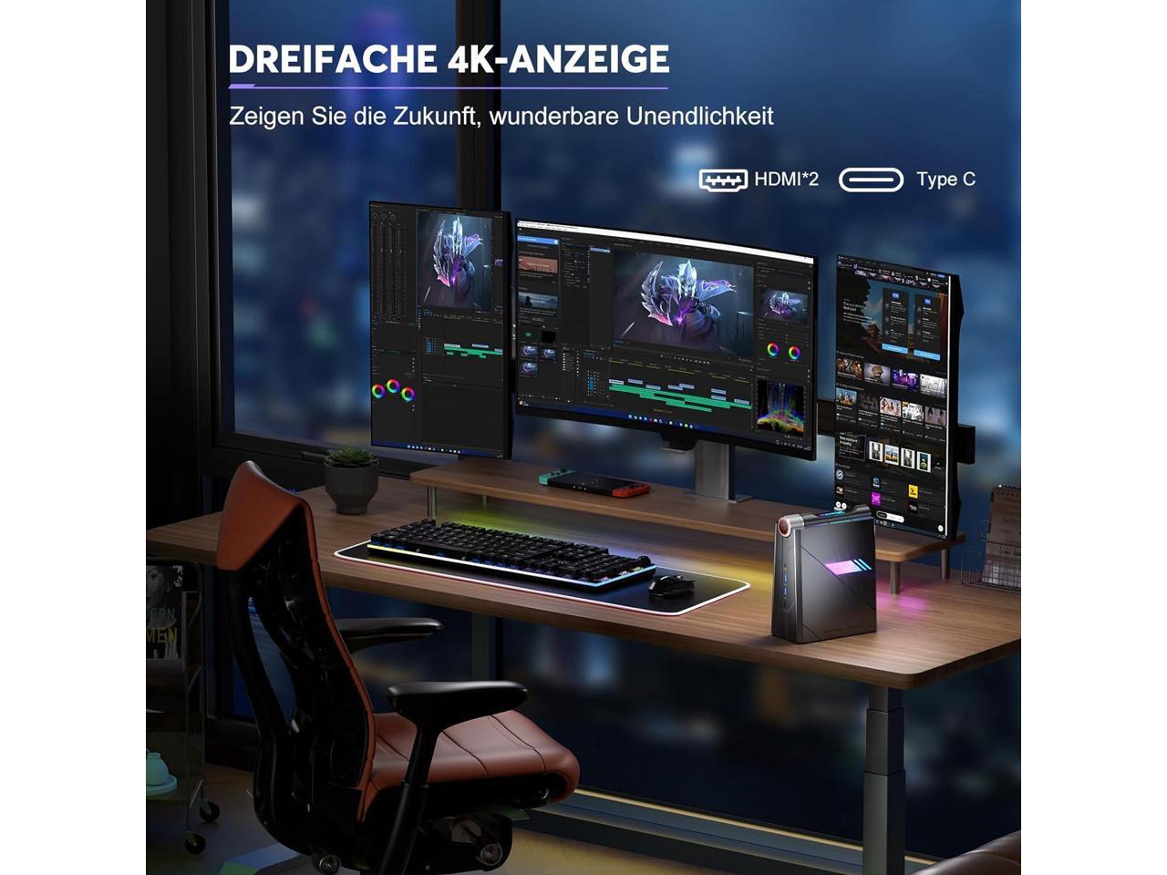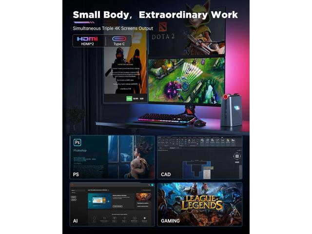 - Equipped with dual fans, the heat dissipation effect is excellent, providing efficient and fast heat dissipation for intense games. 5 different lighting modes create a vibrant gaming atmosphere. And can connect 3 displays at the same time.