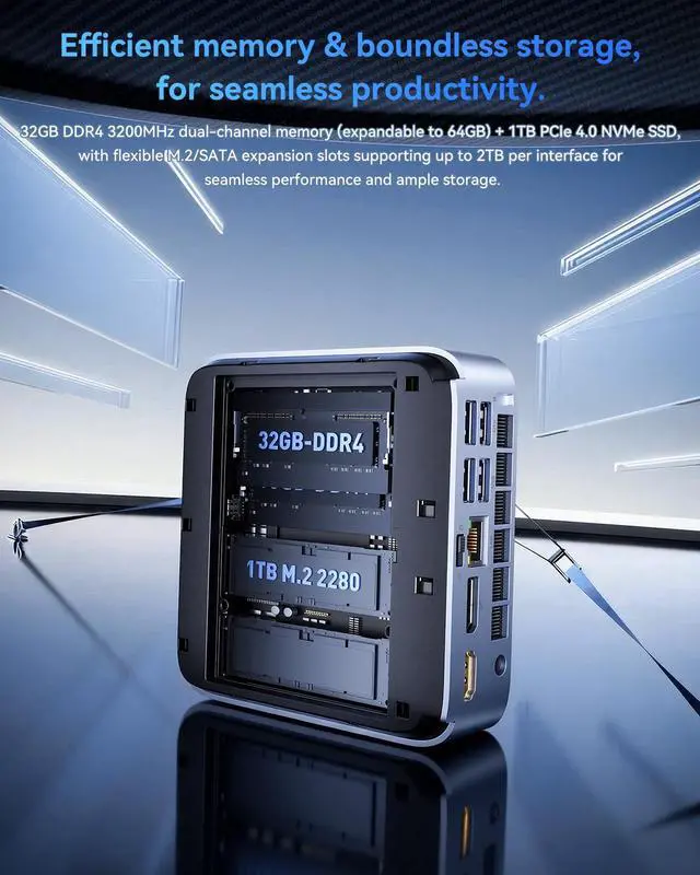 Key Features: Tool-free DDR/SSD expansion; ultra-compact design; 3-screen 4K display support; rich I/O interfaces