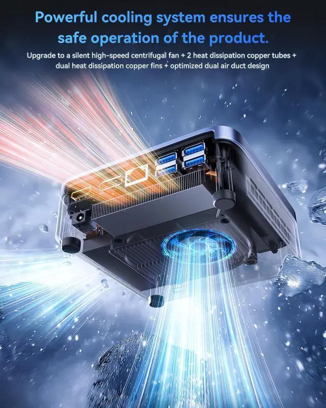 Cooling System: Upgraded silent high-speed centrifugal fan + 2 heat pipes + dual copper fins + dual air ducts, ensuring stable 55W performance and efficient heat dissipation