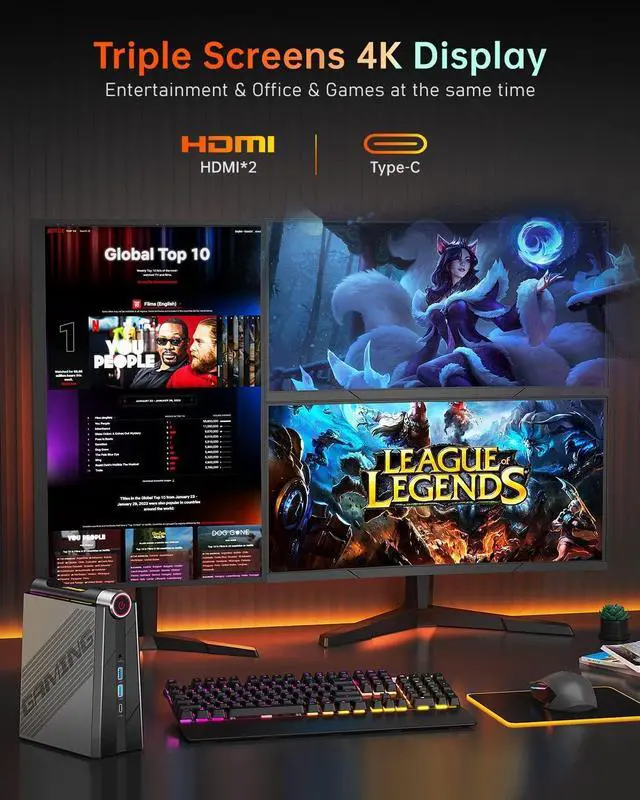 AM08PRO BORN FOR GAMING! AM08PRO Mini computer desktop computer integrates AMD Radeon 8-core 2200MHz GPU to deliver powerful graphics processing power to easily handle any of the most intense games.